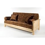 Unfinished full size futon sofa-bed. It's a sofa and a full-size bed PLUS our patented design allows for TWO lounge positions for added comfort in addition to the upright, seated position. Made of premium, southern yellow pine and comes unfinished so you can stain as you like to fit any decor or leave unfinished for the rustic look. Frame is rock solid, easy to assemble, easy to move and easy to convert from couch to bed and back again.With a Cape Cod appeal, the Everest is designed with a 3/4" thick tongue and groove panel style arm. Complete with a premium 9" cotton/fibre-foam futon mattress in natural. Our futons use premium Fibre-Foam which has a higher resilency and a much longer life than most futons sold today. The 9" has two thick layers of Fibre-Foam with blended cotton above, below and in between each layer. This futon will provide exceptional comfort for many years and is highly recommended. (Futon cover not included)