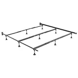Super Heavy-Duty Metal Bed Frame goes under your foundation to support your foundation and mattress. Includes Headboard Brackets to attach your headboard. 9-leg glide system supports even the heaviest waterbeds including full depth 9-inch fill waterbeds. For use with regular beds or waterbeds. Unit adjusts to fit King, Cal King, or Queen size beds. Made in USA.