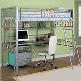 Inspired by dress up, bling, and bangles, the panels are decorated with "baubles" strung in "necklaces" on side panels and guardrails. This twin loft bunk bed has a silver frame with "Bauble" decoration (finished in silver, strawberry pink, pastel orange, and mint green) in the front guardrail panel and both side panels. Includes desk in silver PVC laminate and upper shelf for added storage and a separate silver ladder. Only use a twin size mattress that is 74"-75" long and 37-1/2"-38-1/2" wide with a thickness not to exceed 6" on the upper bunk. Bunk bed is tested and certified by an independent testing laboratory to meet Consumer Product Safety Commission mandatory safety standards and ASTM safety specifications. Some assembly required.Without Ladder: 79-7/8" x 42" x 72-1/4" tall