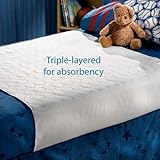 Potty training? Bed wetting? Our saddle-style mattress protector makes clean-up easier and its more absorbant than others! No more changing the sheets at 2:00 a.m.! Simply place over the fitted sheet and tuck in the extra-long side flaps. It stays put, yet lifts off quickly when needed (buy 2, so you'll have a replacement handy). Triple layered, with a soft, quilted top, absorbent core, and waterproof bottom. 34" x 36" Machine wash. Imported. A One Step Ahead Exclusive!
