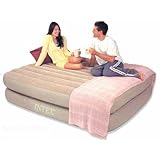 INTEX 66703 (66703E) COMFORT-REST RISING COMFORT RAISED QUEEN AIR MATTRESS AIRBED BED W/ BUILT-IN AC AIR-PUMP & WIRED REMOTE CONTROLProduct Description: The convenience of a portable airbed with the comfort of sleeping on a raised platform. Plush, waterproof nylon flocking covers the mattress top. An indentation on the side helps grip fitted sheets. Dual chamber construction. The lower chamber functions as the box spring platform on a traditional bed, providing extra firmness and support. The upper chamber functions as a mattress and can be adjusted for level of firmness. The Queen sized (approx. 60x80") mattress is raised 20" from the floor for convenience. Hand held wired remote control can easily adjust the firmness and comfort level as needed.